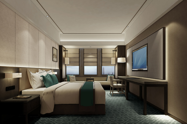 酒店客房設(shè)計以米白色、木色調(diào)打底,輔以藍(lán)色綠色,于靜謐中注入絲絲靈動與活力。一席既可舒適休閑又可靜心工作的沙發(fā),一方自由無拘的天地,激發(fā)賓客無限創(chuàng)造力??头科矫娌季种?,引入“室”與“廳”的概念,小隔斷將“廳”與“室”象征性分離,增強(qiáng)居住儀式感。