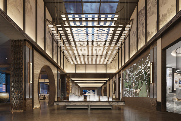 當(dāng)巖、金屬、玻璃、光不同介質(zhì)相嵌融,析出空間入內(nèi)的狀態(tài),于此展開(kāi)了一場(chǎng)靈感與藝術(shù)并存的設(shè)計(jì)探索。凹凸設(shè)計(jì)公司?以中式古典表達(dá)手法演繹空間格調(diào),營(yíng)造與觀(guān)者情感共鳴的體驗(yàn),這便是人們一直在追尋的一種心與境的里應(yīng)外合。而奢華、通透、淡雅的中式韻味于中州大地之上。