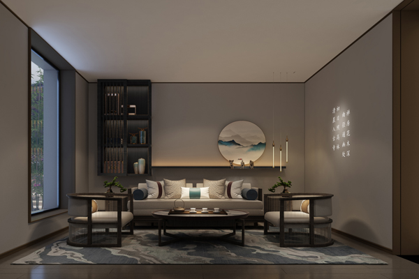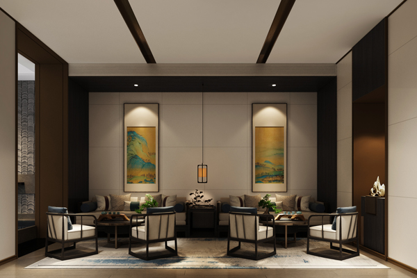 VIP洽談區(qū)燈光設(shè)計(jì)恰到好處隱現(xiàn)著“實(shí)”與“虛”的意境,形成人與環(huán)境自然互動(dòng)的場(chǎng)所。軟裝陳設(shè)以山水為媒,完整呈現(xiàn)設(shè)計(jì)秩序之美和形式之美。